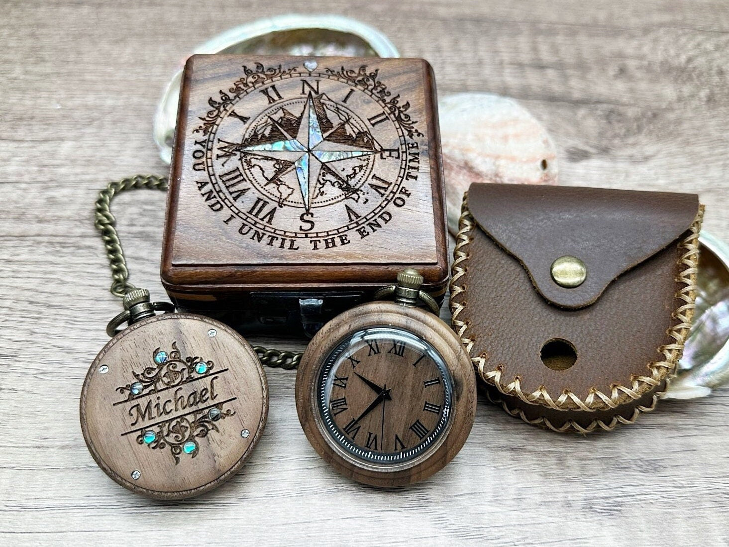 Introducing our charming wood pocket watch, a timeless piece that exudes vintage elegance. Crafted with exquisite attention to detail, this pocket watch adds a touch of old-world nostalgia to your accessories collection. With its classic round shape and vintage-inspired dial, it effortlessly blends style and functionality. The intricate mechanical movement and sturdy chain complete the look, making it a perfect gift for watch enthusiasts and lovers of all things retro. Whether worn as a statement piece or cherished as a treasured keepsake, this pocket watch is sure to become a prized possession.