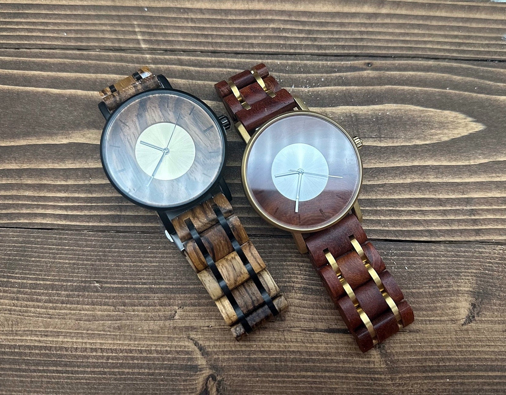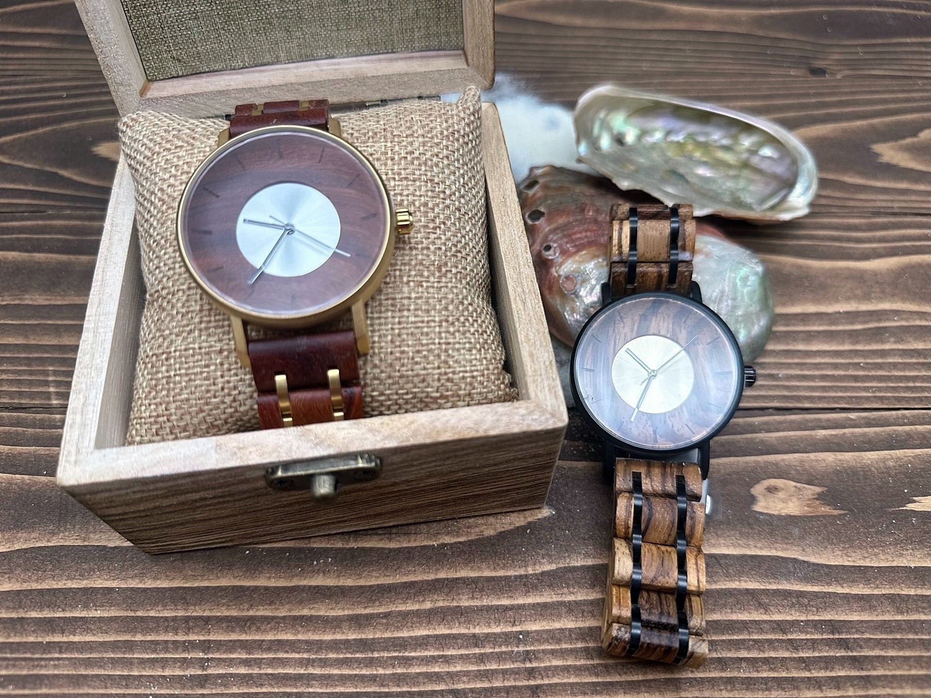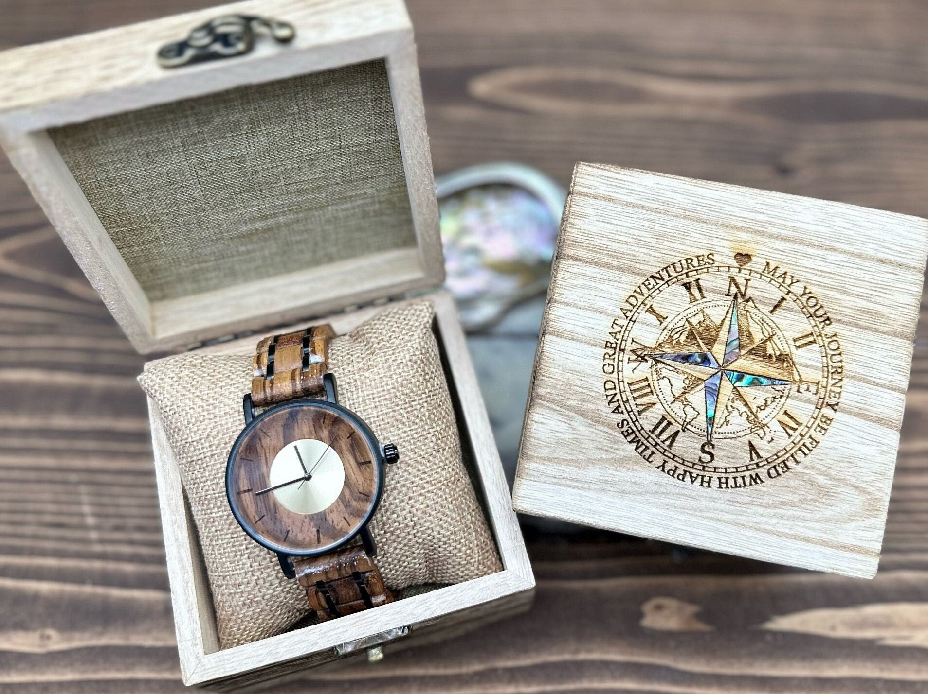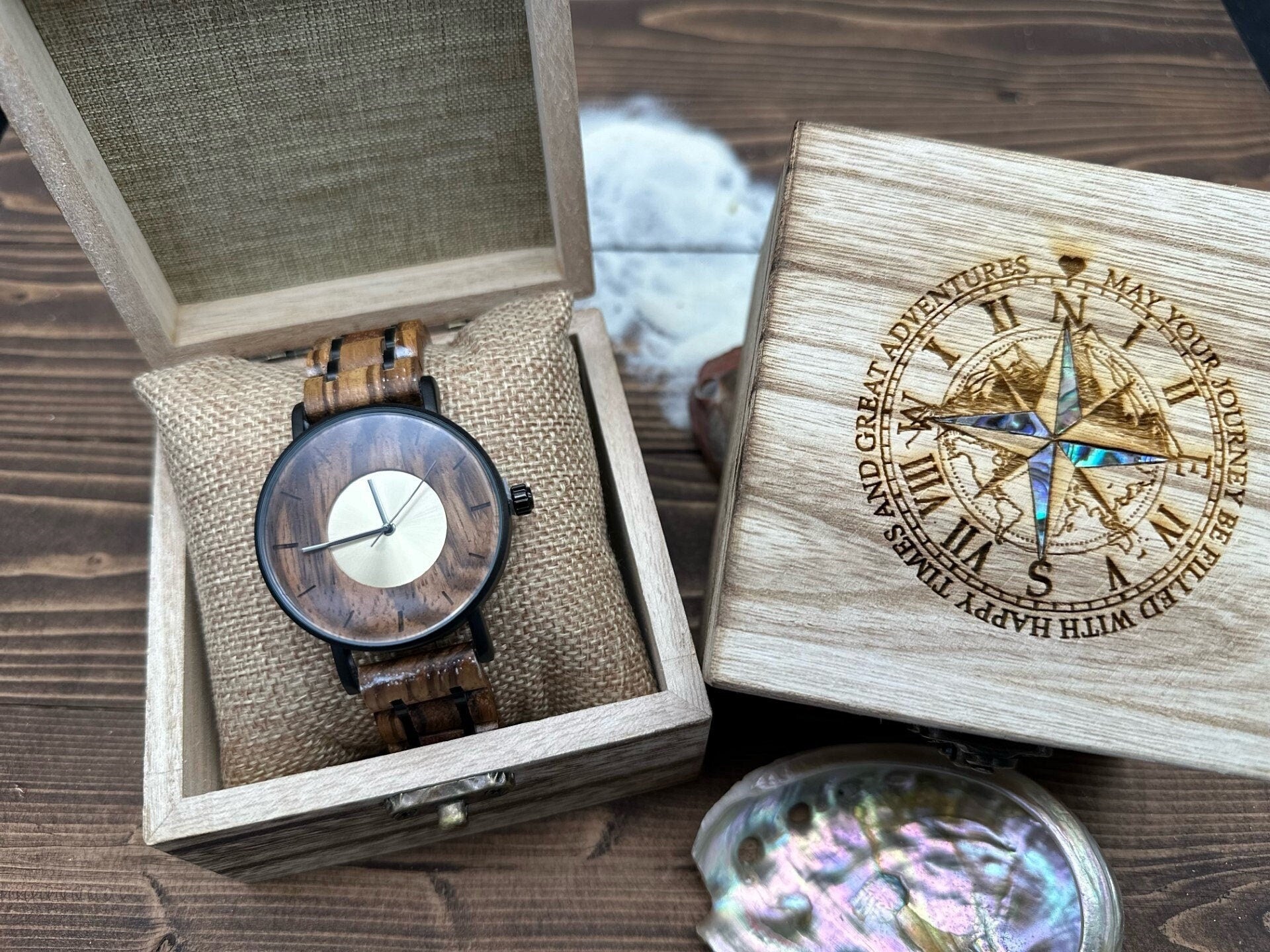 Introducing our stylish wooden wristwatch with a touch of elegance! This sophisticated timepiece features Japanese Quartz Movement for accurate timekeeping, and is battery operated for your convenience. Crafted from high-quality wood, this watch comes in a beautiful wooden gift box, making it the perfect present for yourself or a loved one. Stay on time and on trend with this unique accessory that exudes charm and craftsmanship.