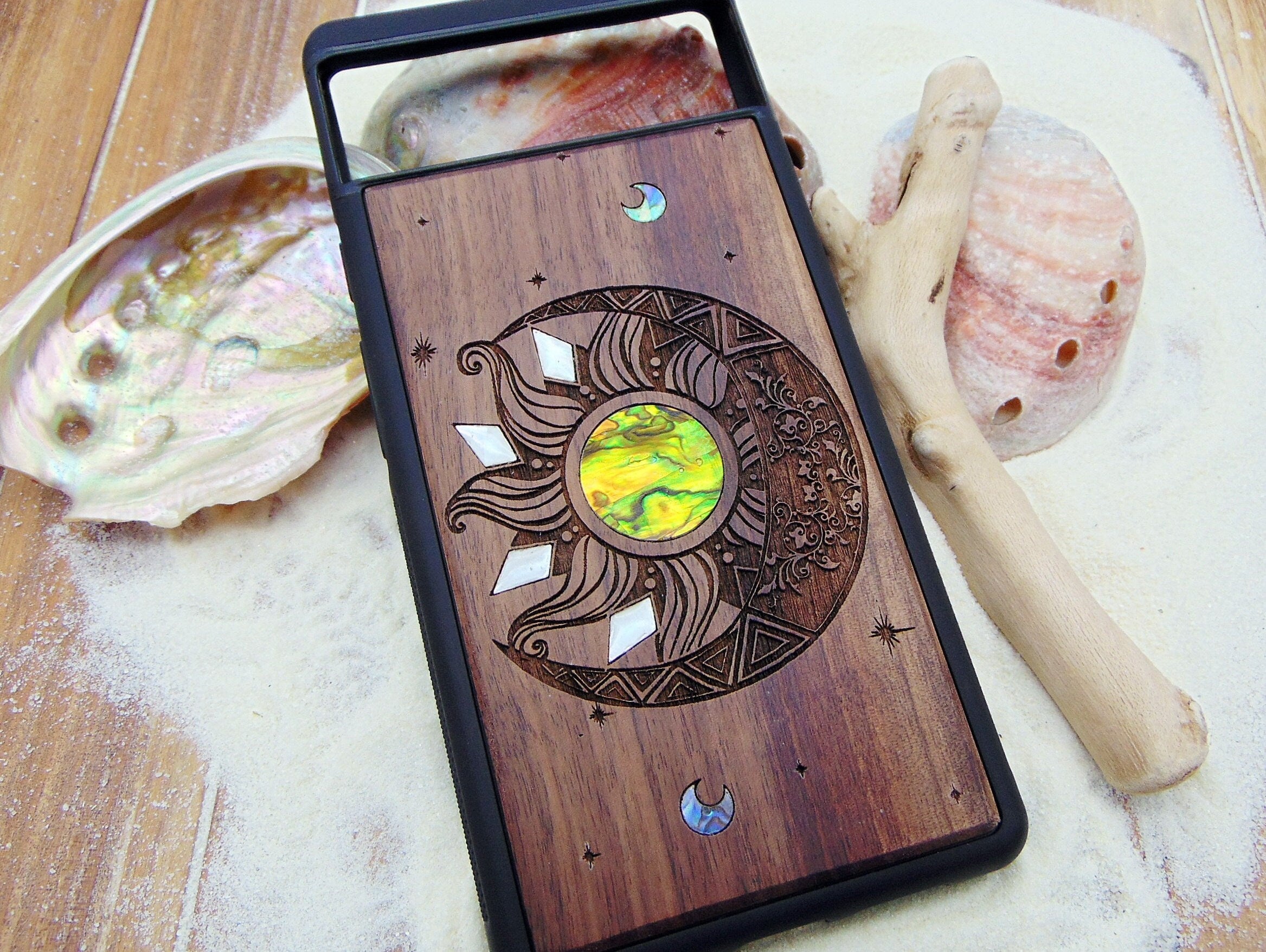 iPhone case with sailor moon design is engraved with natural Abalone shell inlay. It can be personalized with your writing, name, etc. at no extra cost.