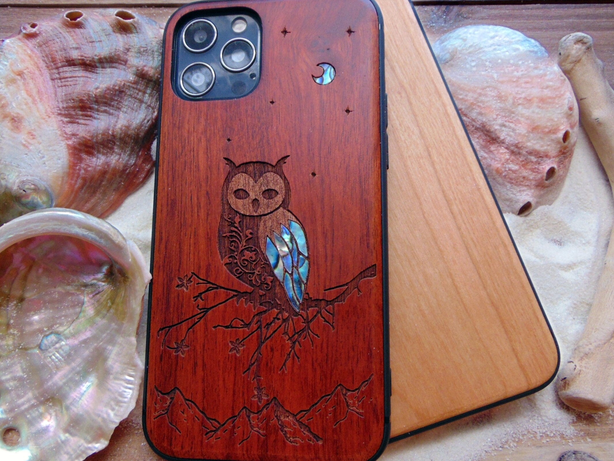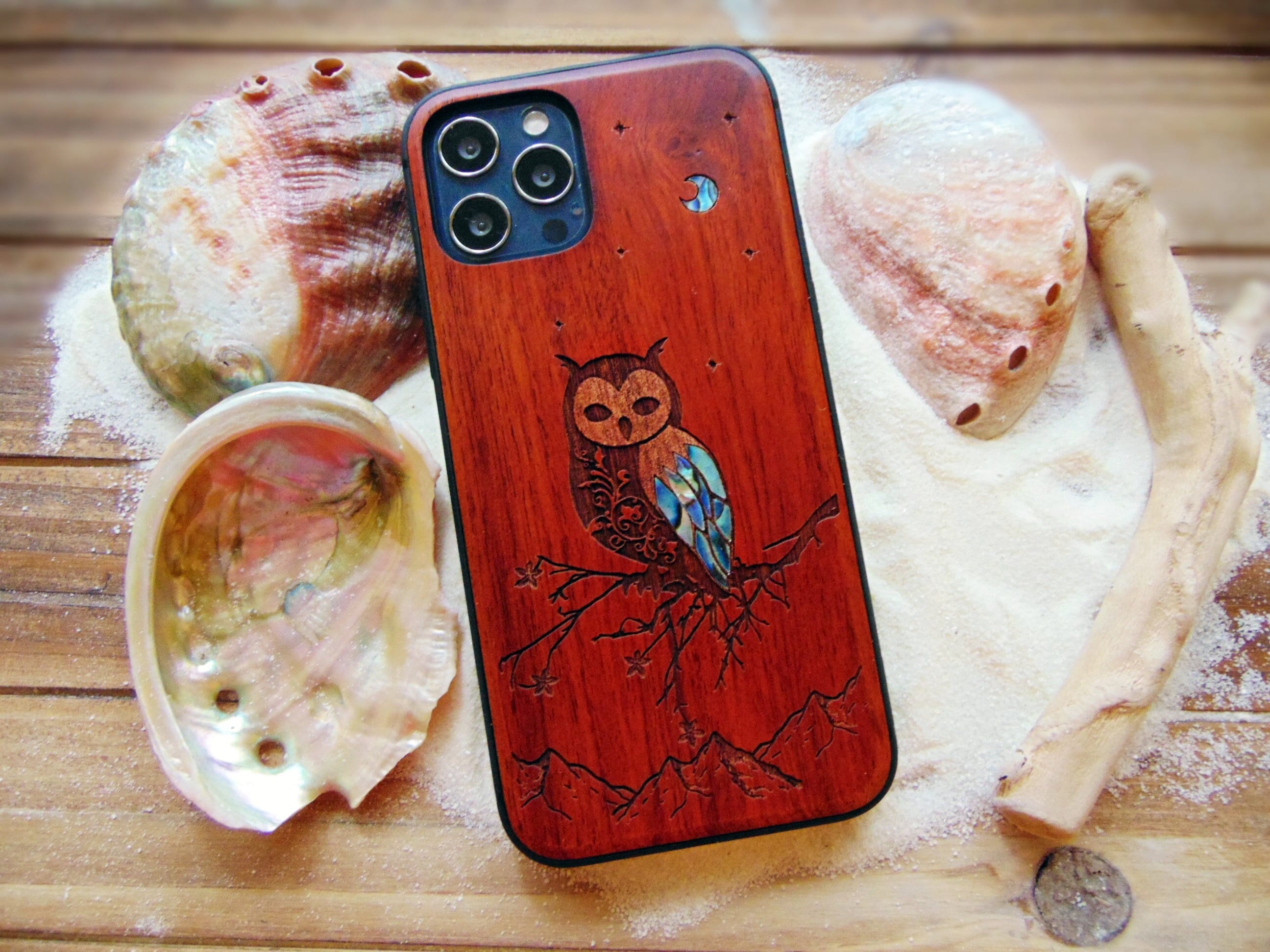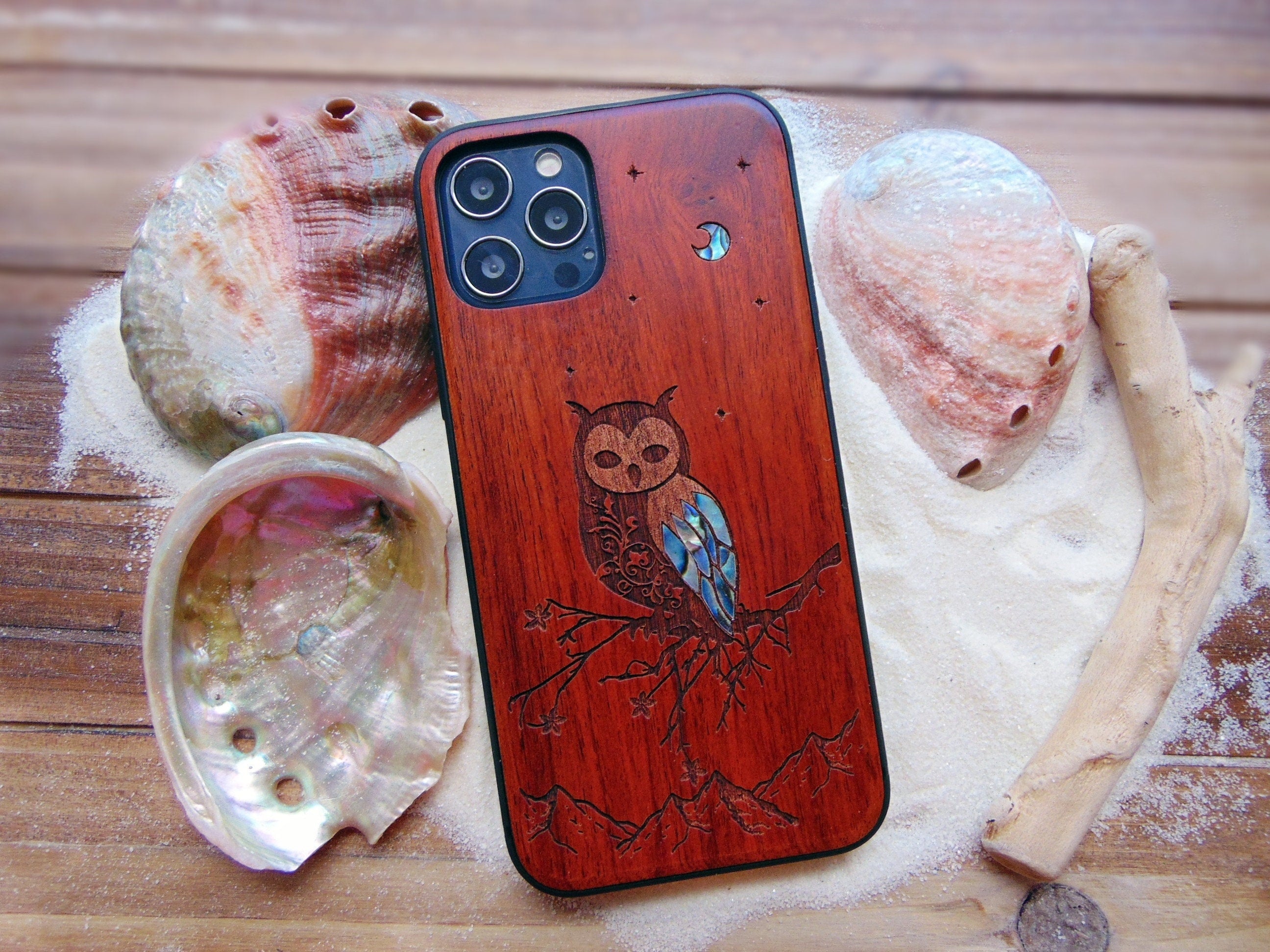 Introducing our Owl Design Abalone Shell Decorated Wood Phone Case, the perfect accessory to elevate your phone's style! Makes a great personalized gift. This unique phone case features a stunning owl design that adds an enchanting touch to your device. Handcrafted from high-quality wood, it not only provides protection but also adds a natural and rustic charm to your phone. The exquisite abalone shell embellishment enhances the beauty of the case, adding a touch of shimmer and iridescence. With precise cutouts for easy access to buttons and ports, this phone case is not only fashionable but also functional. Stand out from the crowd and showcase your love for nature and wildlife with our Owl Design Abalone Shell Decorated Wood Phone Case!