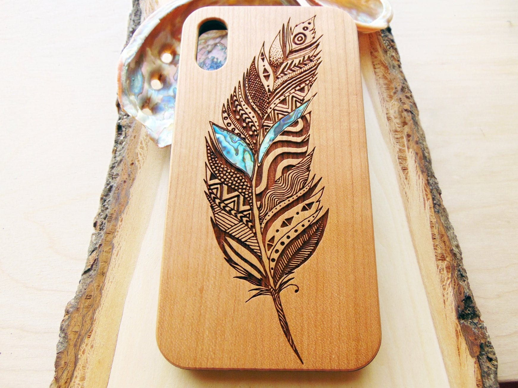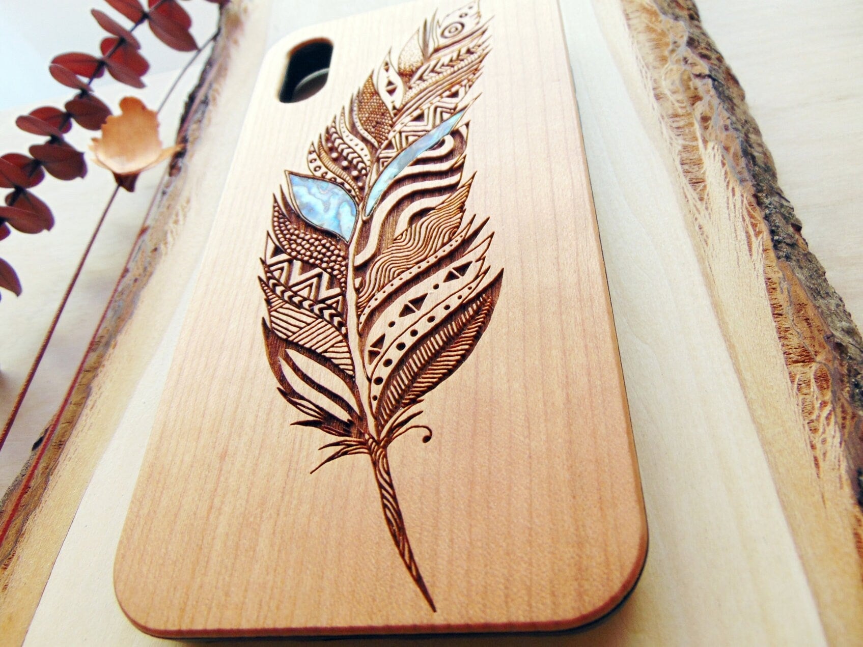 Inserting Mother of Pearl or Abalone shell into the surface of an object (Wood in this case) is called an inlay. In old days this was done all by hand, nowadays we use a laser cutter to cut and engrave our wood and hand inlay the pieces.