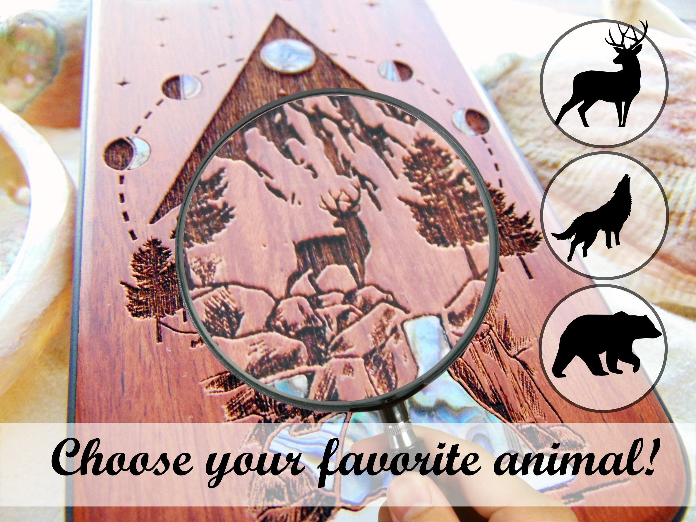 Moon phases design engraved iphone case. Makes a great personalized gift.