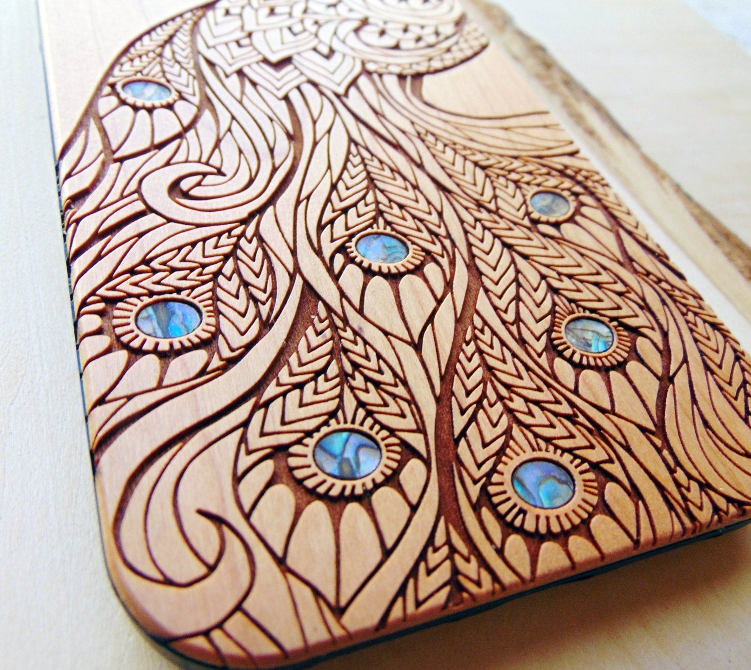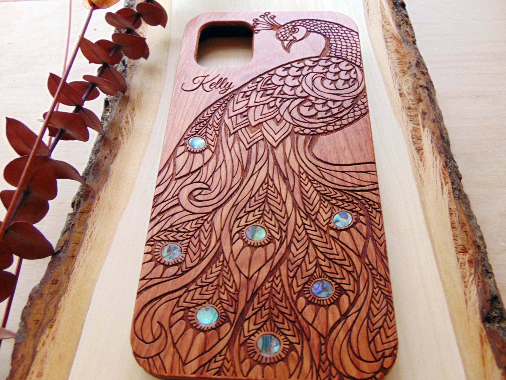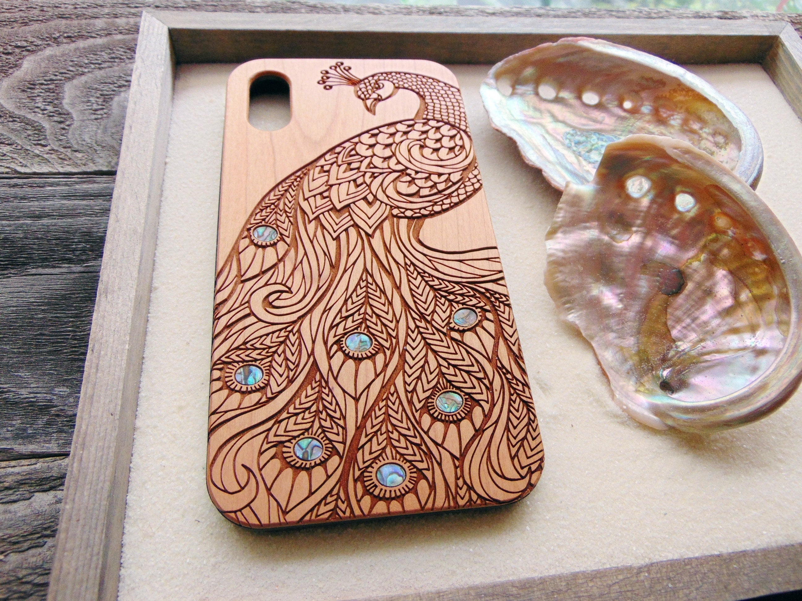Inserting Mother of Pearl or Abalone shell into the surface of an object (Wood in this case) is called an inlay. In old days this was done all by hand, nowadays we use a laser cutter to cut and engrave our wood and hand inlay the pieces.