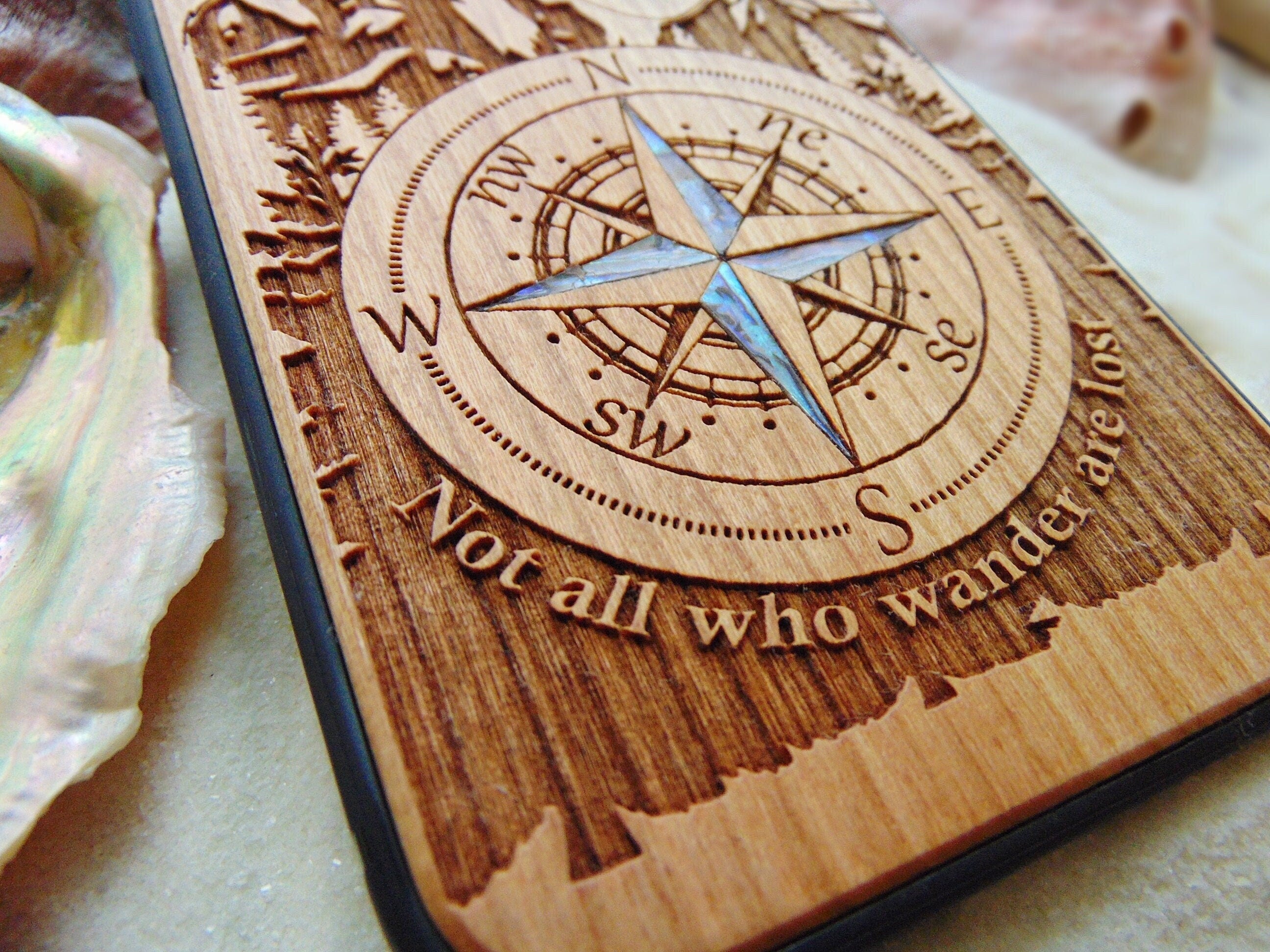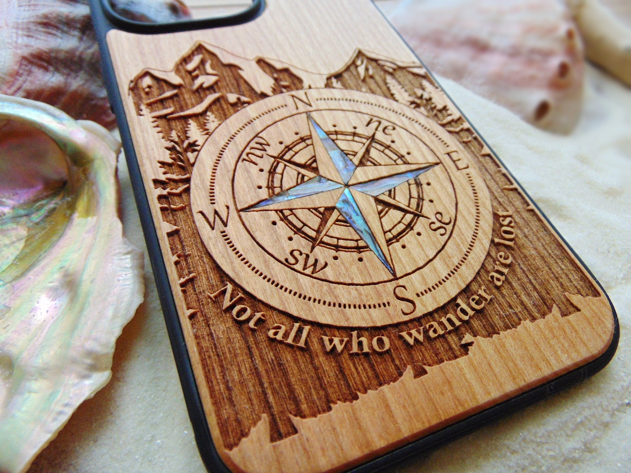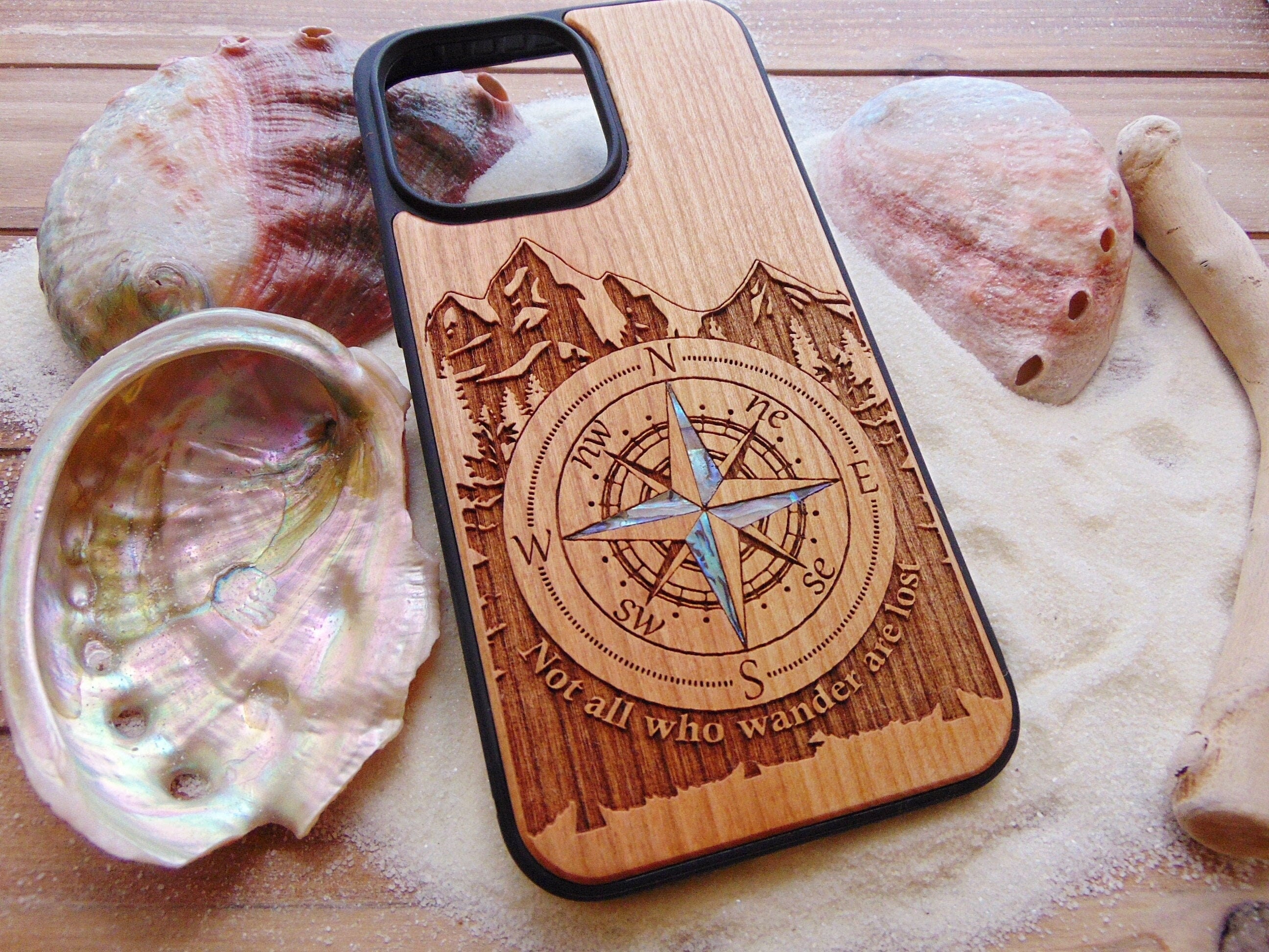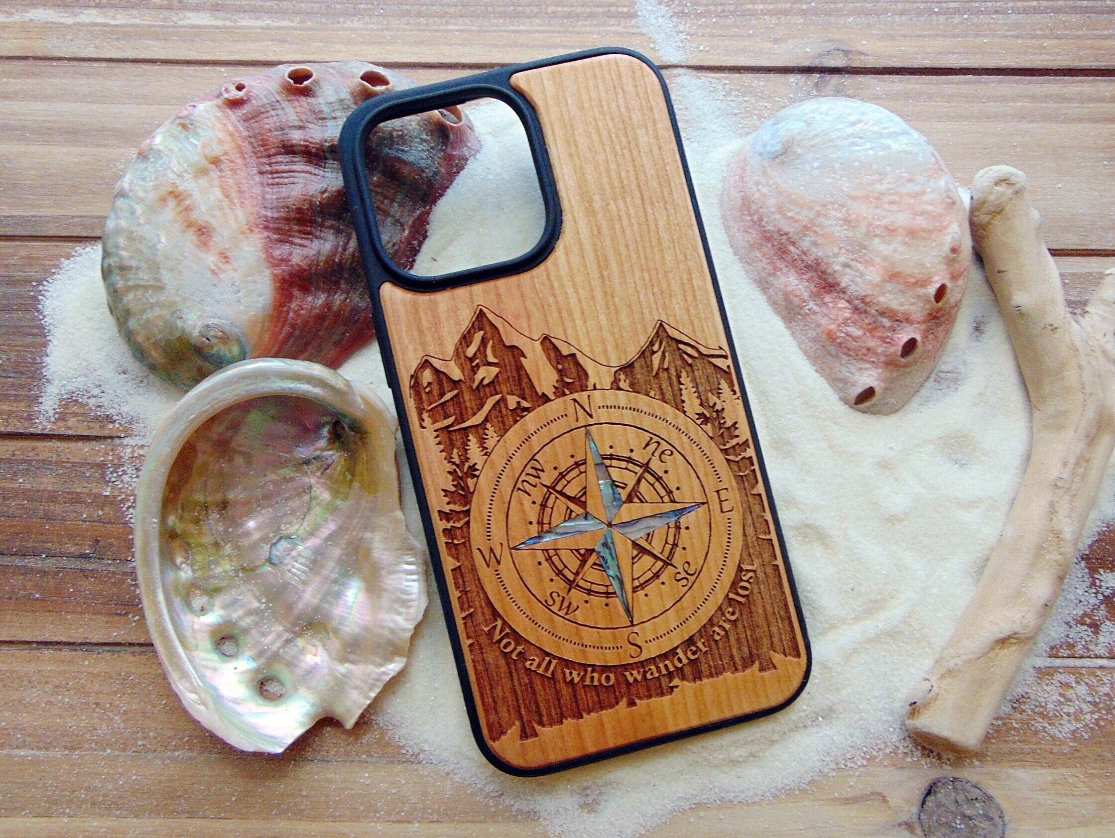 Inserting Mother of Pearl or Abalone shell into the surface of an object (Wood in this case) is called an inlay. In old days this was done all by hand, nowadays we use a laser cutter to cut and engrave our wood and hand inlay the pieces.