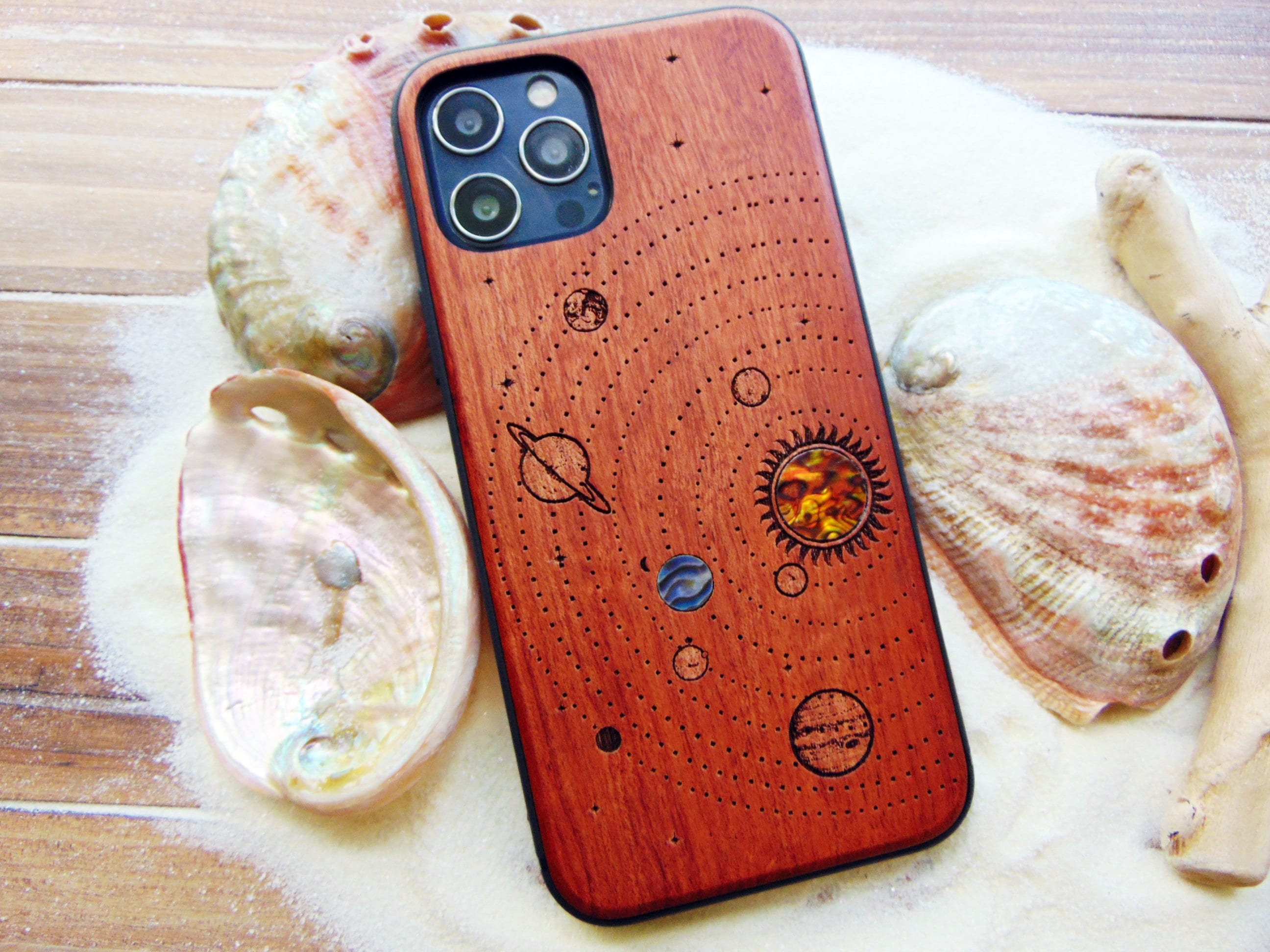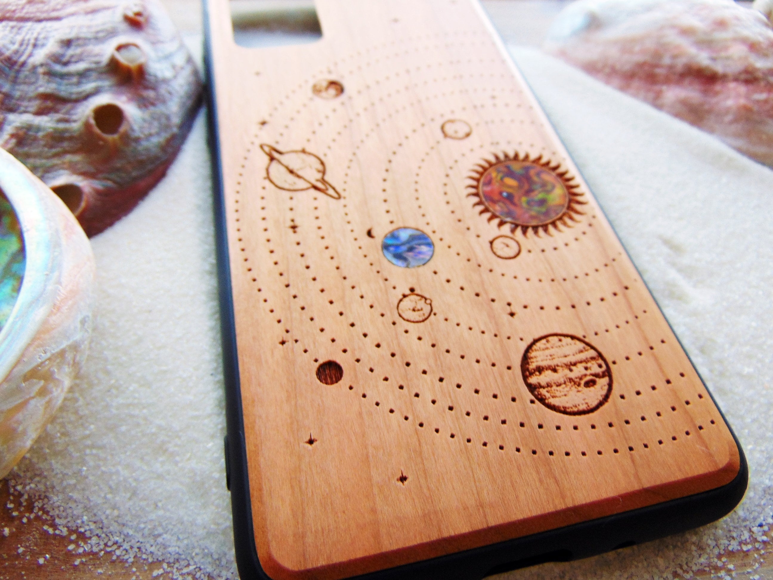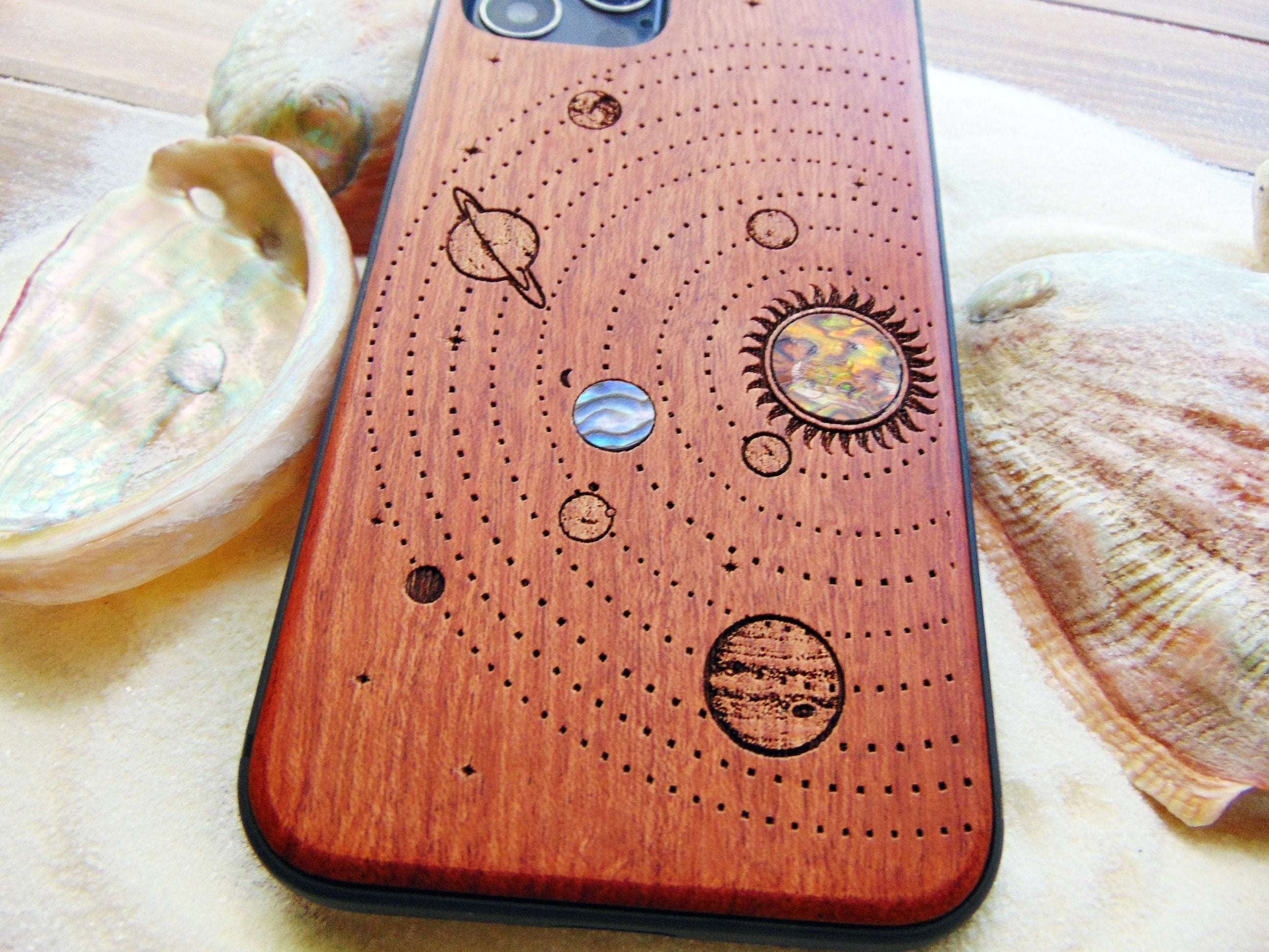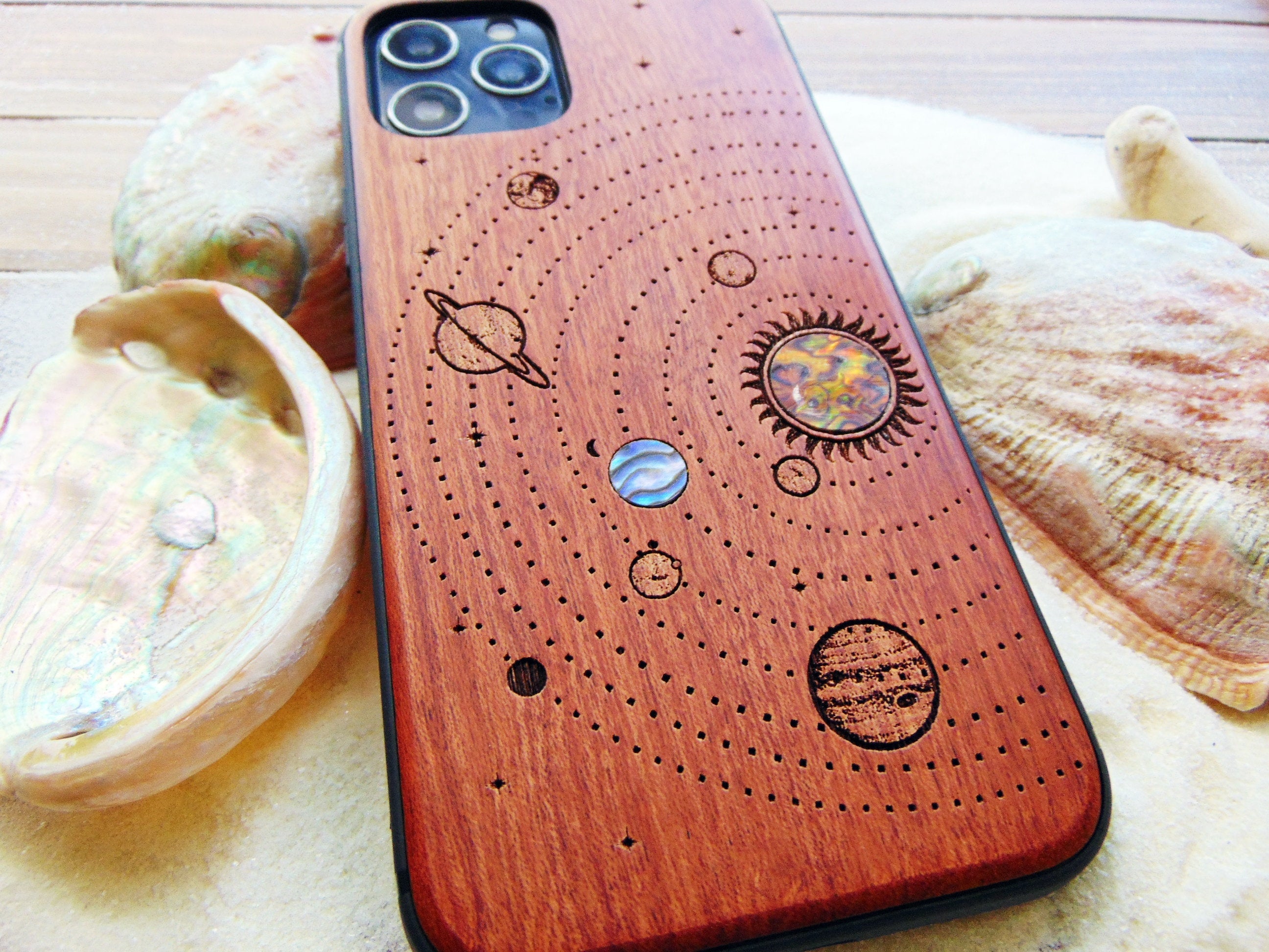 Solar system design engraved iphone case. Makes a great personalized gift.