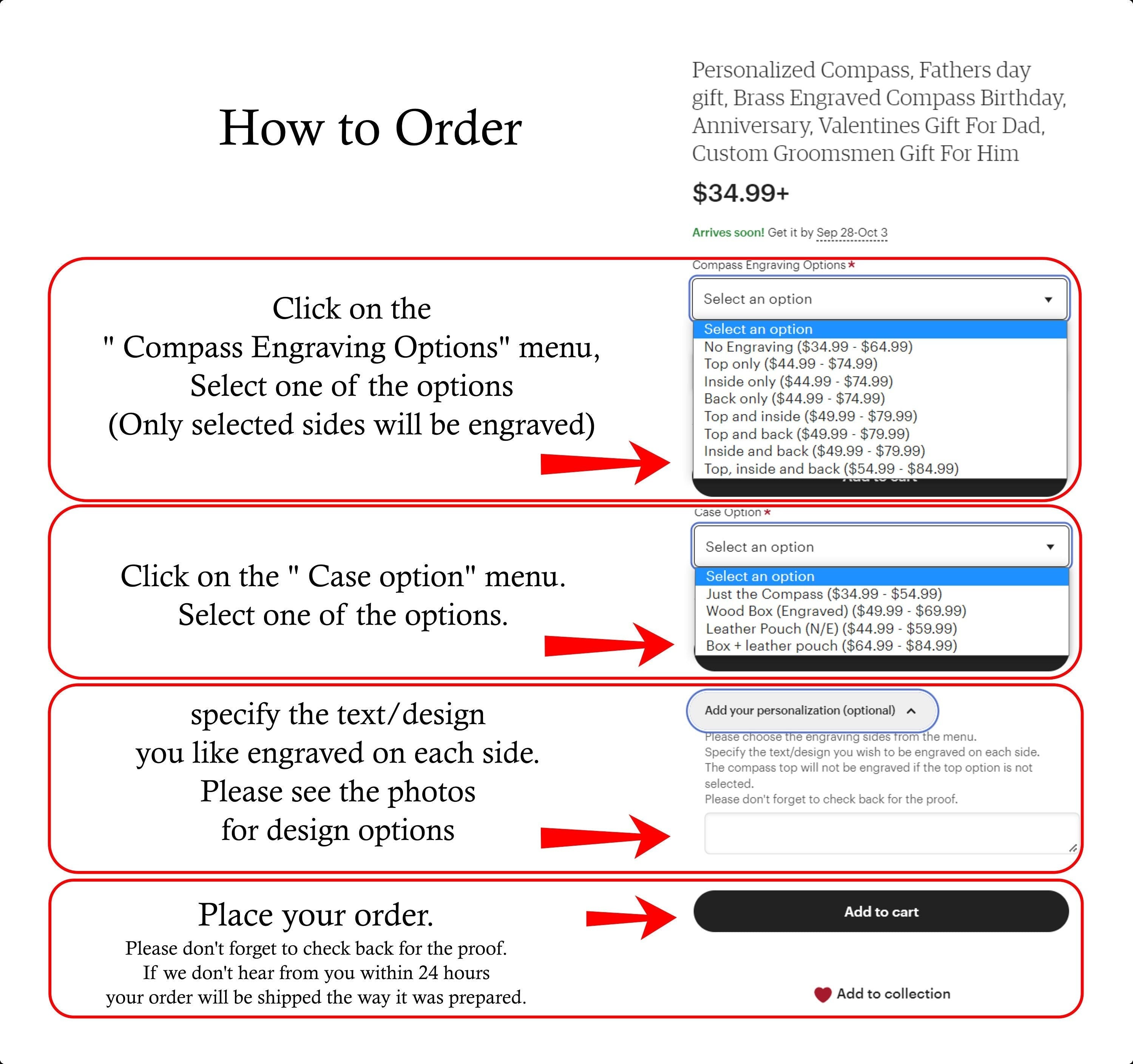 Brass compass would make a great Anniversary, Birthday, Father's day, valentine's day gift. Each compass is handcrafted in a vintage style. Brass metal may have slight imperfections. Every piece is unique and is bound to become a keepsake for the person who receives it as a gift.