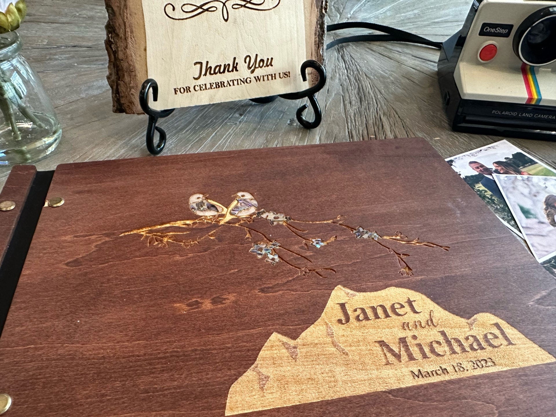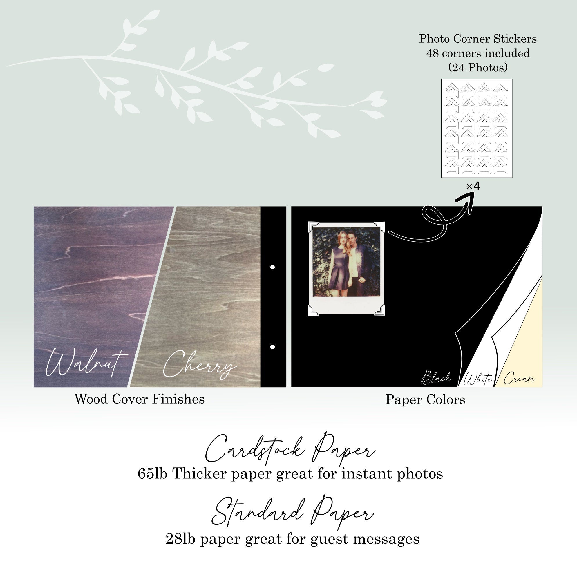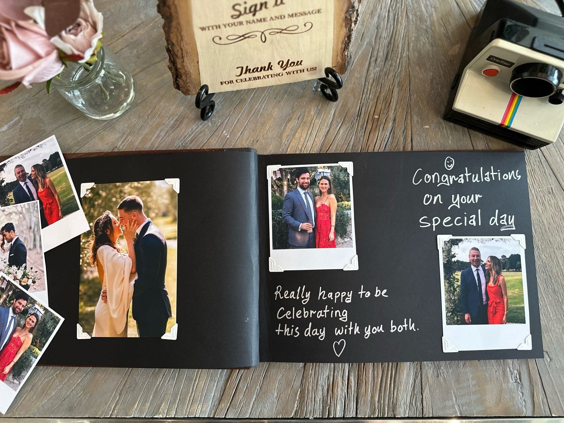 Personalized Polaroid Guest Book for Weddings - Engraved Wood Cover, Photos & Messages, Rustic Photobooth Album