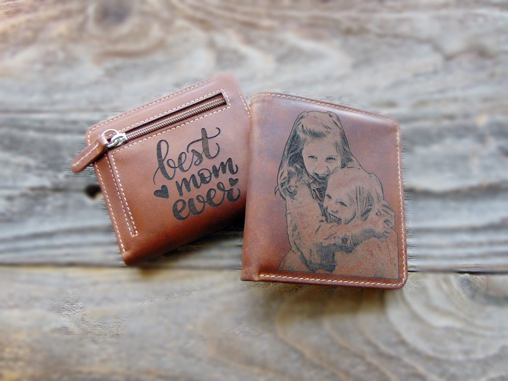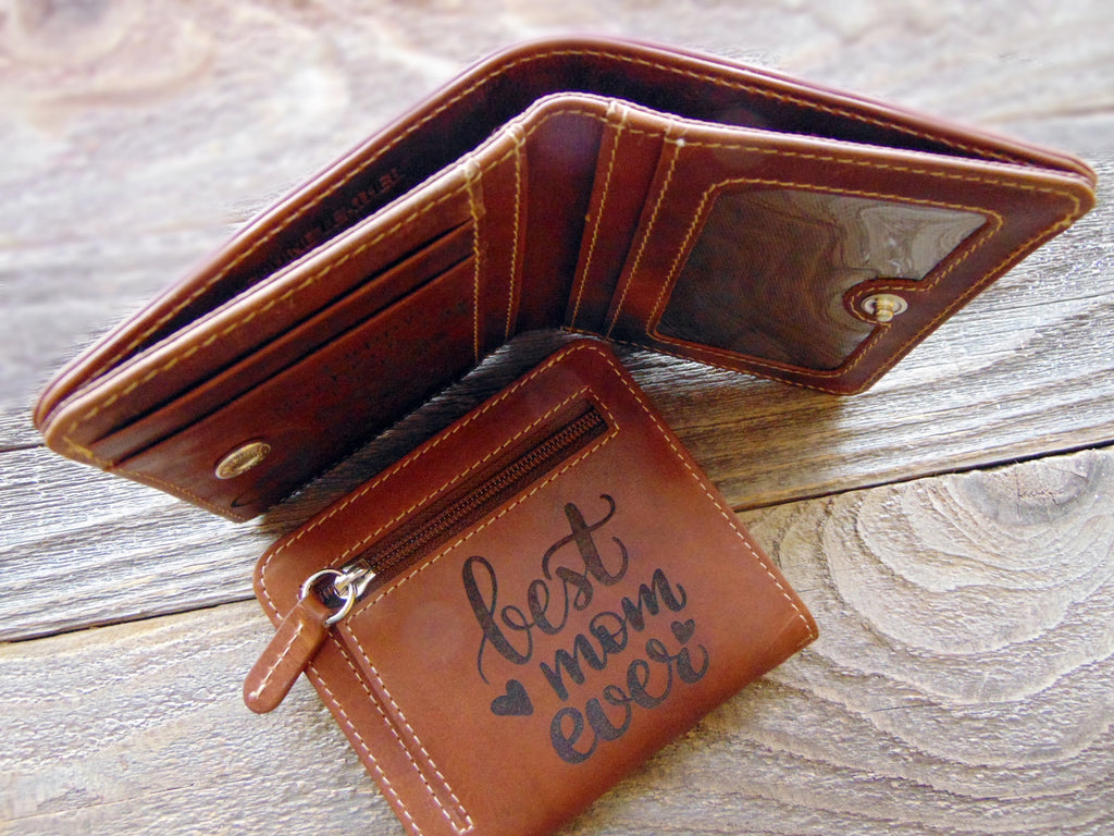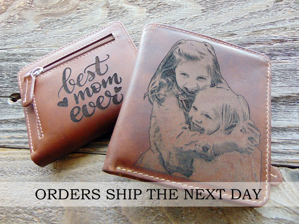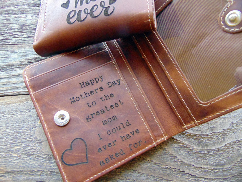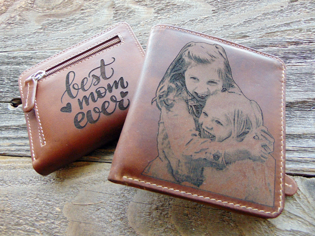Personalized leather women's wallet. RFID blocking custom wallet for mom.
